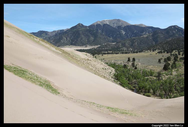 the Medano Creek, we found the sand dunes rise steeply (almost 45 degrees?)