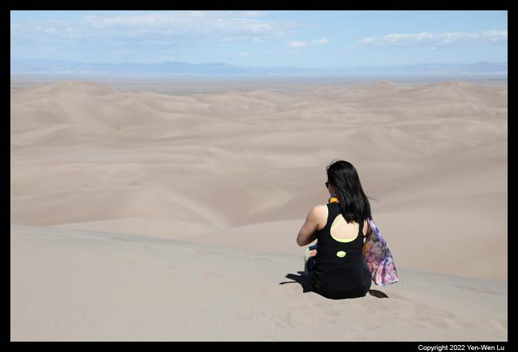 the sand dunes. We just sit at the middle of the dune slope to take a