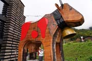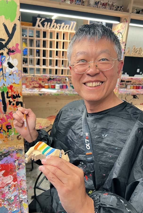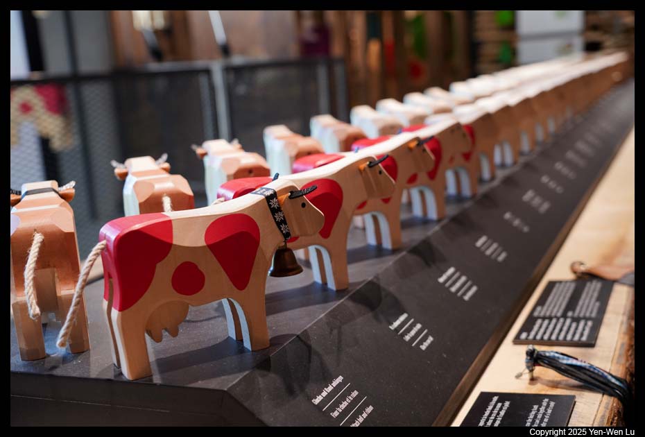 craftsmanship of carved wooden cows in Switzerland. The Trauffer
