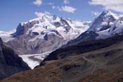 down). The Matterhorn Glacier Trail travels through a barren, rocky