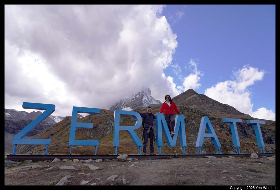 Zermatt sign at ~ 2:30PM, Matterhorn was already not visible at all.