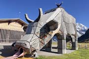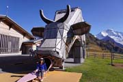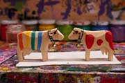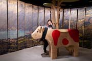 craftsmanship of carved wooden cows in Switzerland. The Trauffer